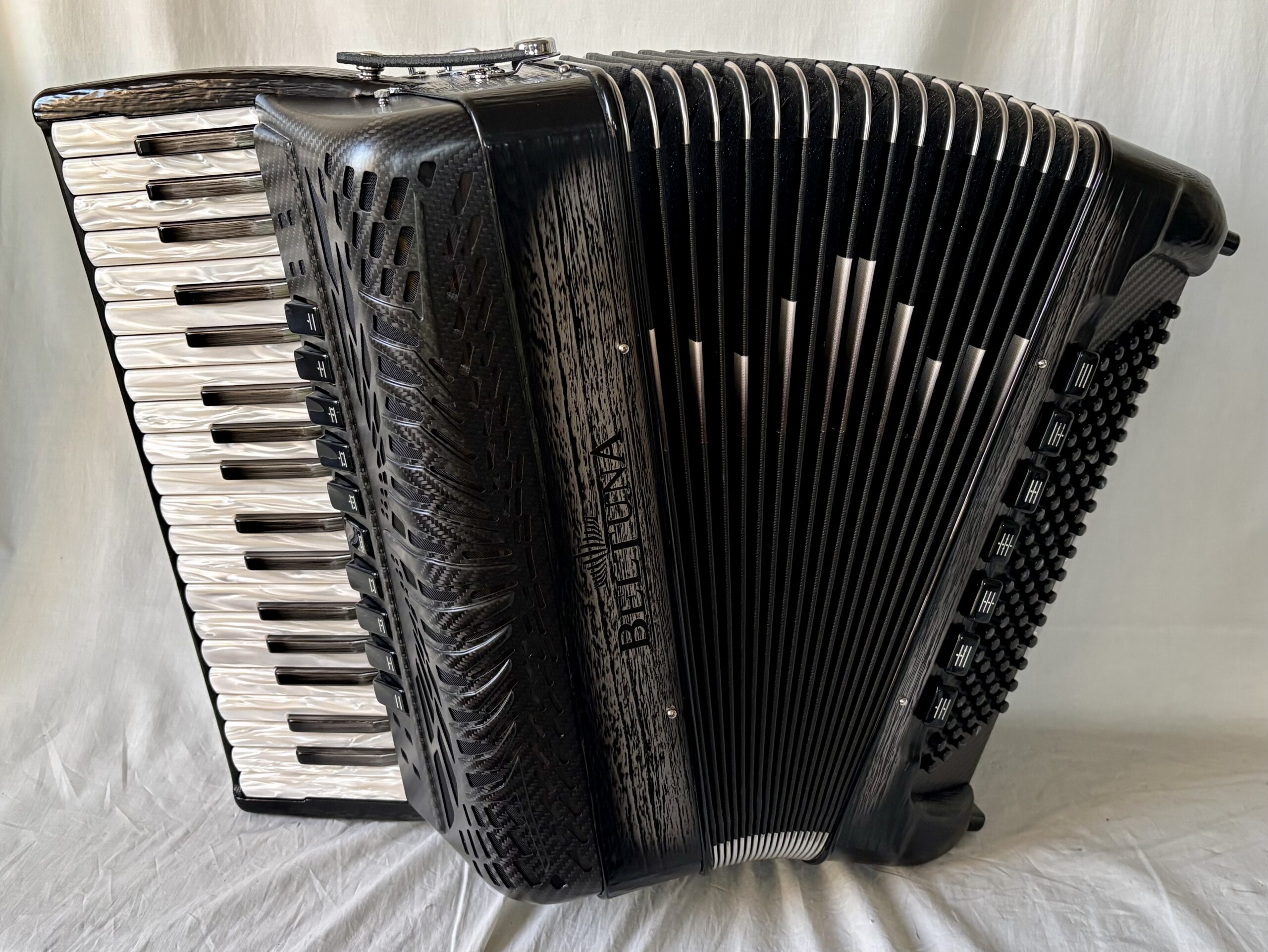 BELTUNA, ein Erfolg, der sich auf handwerkliches Können, italienischen Stil und Tradition stützt. Qualität von Klang und Materialen, Schönheit und Einzigartigkeit von Erzeugnissen, die geschaffen werden, um das Können des Musikers zu untermalen und dem Ohr des Zuhörers zu schmeicheln.Das Akkordeon ist vorrätig.
